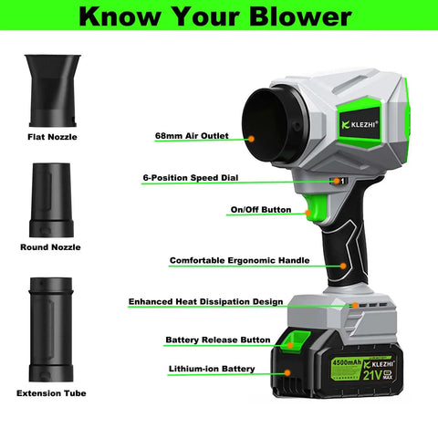 ✅ Turbocharged 1500G thrust for wet leaves, dust, sand, and snow✅ 6 adjustable speed settings for gentle breeze to heavy debris