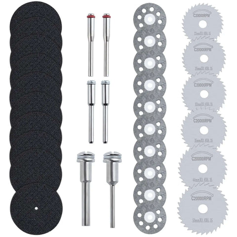 This cutting wheel set is a handy collection of tools designed for precision cutting tasks on materials like wood, metal, plastic, and stone. It's commonly used by DIY enthusiasts, hobbyists, and pros in home workshops, crafting, or repair jobs to handle everything from detailed cuts to heavy-duty shaping.