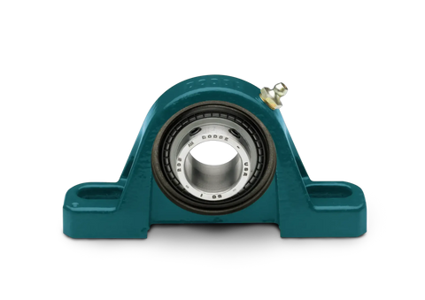 Dodge Mounted Bearings are rugged units designed to support shafts in heavy industrial machinery. This model uses a fixed, non-expansion pillow block with a cast iron housing, built for reliability in harsh environments and long service life in mining, HVAC, food processing, and material handling.