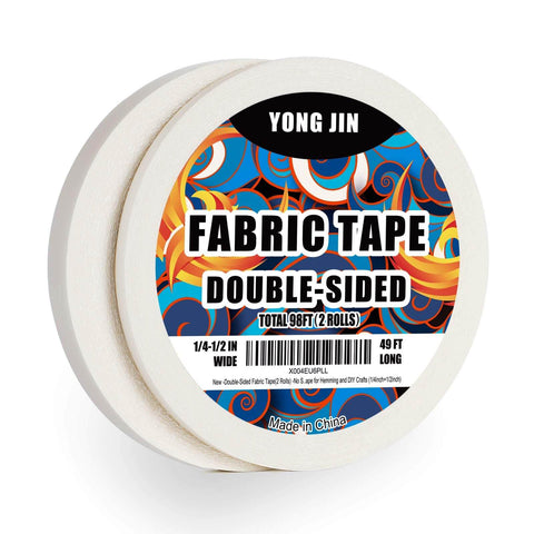 Double-Sided Fabric Tape For Quick Clothing Repairs No Sewing Or Ironing Needed Two Rolls One Quarter Inch And One Half Inch Adhesive Cloth Tape For Hemming, DIY Crafts, Temporary Fixes, And Fabric Bonding