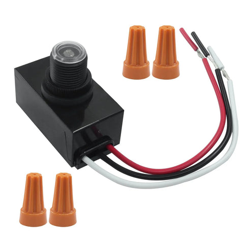The dusk-to-dawn sensor is a weatherproof photoelectric switch designed to automate exterior lighting at post-mounted fixtures. It detects ambient light and turns on after sunset and off at sunrise, helping reduce energy use and bulb wear. Ideal for entryways, walkways, and outdoor fixtures in hotels, shopping centers, dorms, and other outdoor spaces.