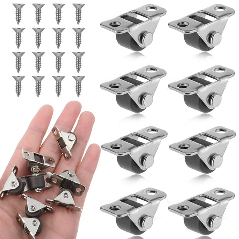 This is a set of 8 compact caster wheels designed for smooth, straight-line movement. They're typically used under furniture, small appliances, drawers, and DIY projects to enable easy sliding in tight spaces without taking up much height.
