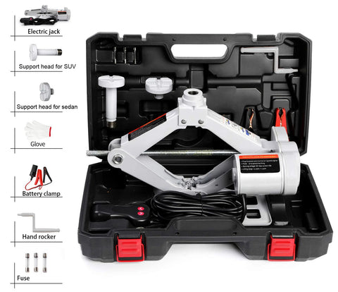 Electric Car Jack 3 Ton Scissor Floor Jack Set With 12V Automatic Lift For Roadside Emergency Tire Change, Sturdy Triangular Base, Cold Rolled Steel Construction, Reinforced Screw Rod, Self Locking Safety, Fits Sedans And SUVs