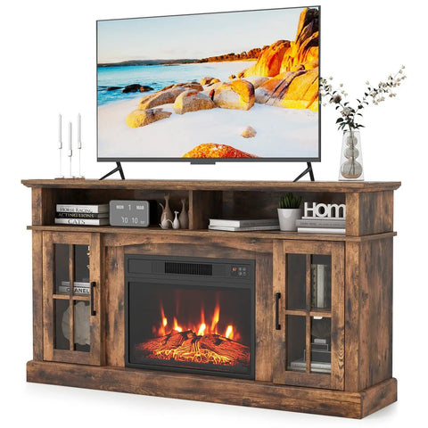 Electric Fireplace TV Stand For 65 Inch TVs With 23 Inch Insert 3 Level Flame Remote Control Hidden Storage Cabinet Brown Modern Media Console For Living Room Go To Cozy Vibes