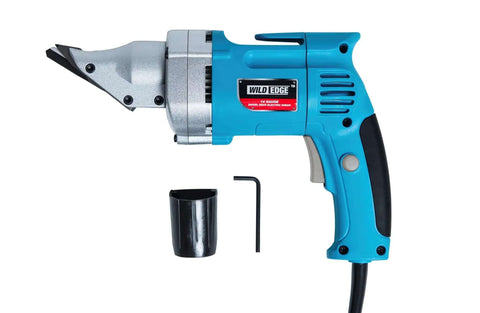 This electric metal shear is designed to cut thin sheet metal and lightweight stainless steel quickly and cleanly. The full 360-degree swivel head lets you tackle curves, circles, and irregular shapes in metal roofing, flashing, and fabrication tasks.