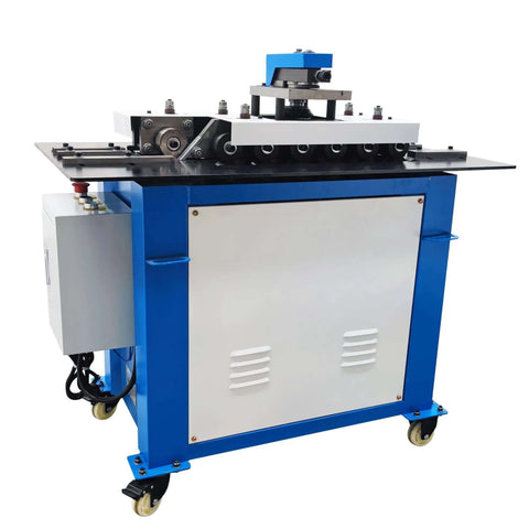 This electric sheet metal seaming machine is designed for HVAC ductwork, specifically to process iron sheets up to 1.2mm thick into seven distinct seam profiles for vent ducts and exhaust piping. Suitable for professional shops and fabrication environments, it delivers precise, consistent joints with minimal manual effort.