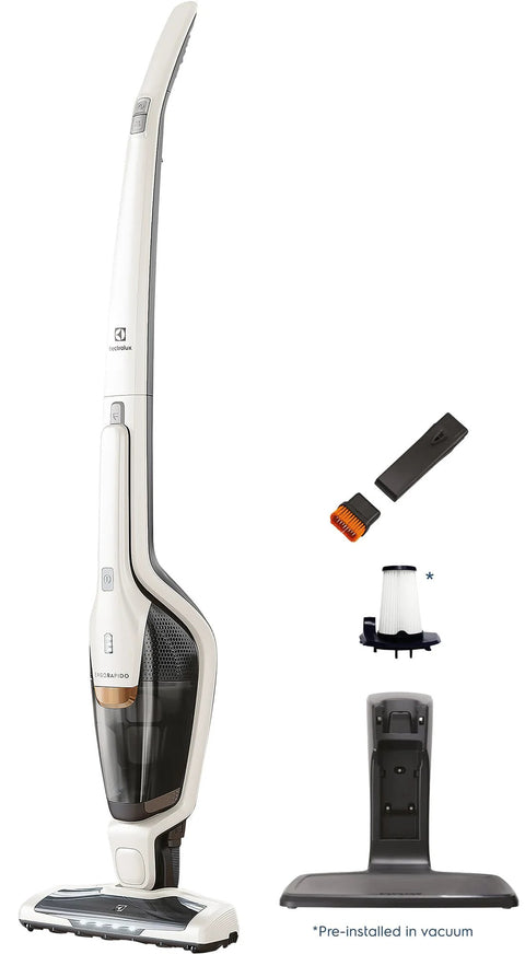 Cordless 2-in-1 Vacuum Cleaner With 180 Degree EasySteer Mobility, LED Lights For Dark Corners, Serious Suction, 48 Minute Run Time, Detachable Hand Unit, Two Power Modes, Satin White By Electrolux Ergorapido