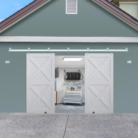 Exterior barn door hardware kit for double doors 12ft track