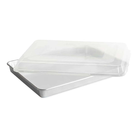 Designed for big batches, this extra-large aluminum baking pan supports bars, sheet cakes, roasts, and more. The included BPA-free lid makes transport and storage easy, while the encapsulated steel rim prevents warping for lasting durability.