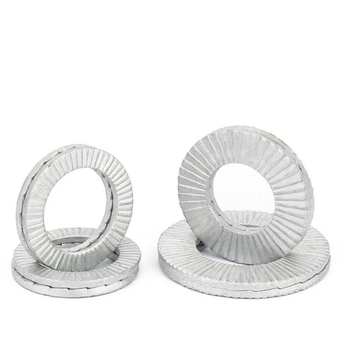 ✅ Durable double-layer self-locking design creates irreversible friction, preventing loosening under vibration✅ Choose stainless steel or Dacromet-coated 65Mn steel for rust resistance and up to 500% longer fatigue life