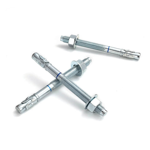 These wedge anchors are heavy-duty cement anchors designed to secure equipment, fixtures, and structural components to solid concrete. They come zinc-plated to resist rust and include a nut and washer for quick installation, making them a solid choice for indoor and outdoor mounting. Do not use in block or brick bases.