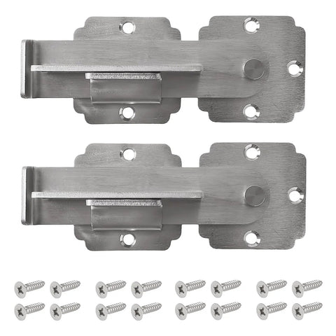 This 2-pack heavy-duty latch is built from 4 mm stainless steel and is ideal for outdoor wooden fences, swing gates, barn doors, sheds, vinyl fences, and yard enclosures. It includes 8 self-drilling screws for quick installation and features an adjustable mounting gap (0.2 to 2 inches, 5.1-50.8 mm) with 360-degree rotation to fit a wide range of gate setups.
