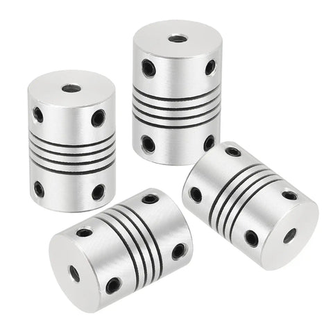 These flexible shaft couplings are lightweight aluminum alloy joints designed to connect motors to drive shafts in 3D printers, CNC machines, and other automation setups. They help align shafts and encoders, absorb minor misalignment, and smooth drive trains in DIY projects and professional equipment.