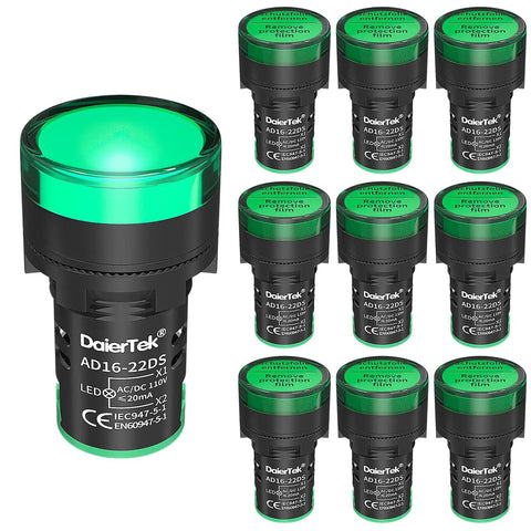 Green 120V LED Indicator Light Energy Saving Pilot Lamp For Panel Mount 22mm Seven Eighths Inch Hole AC DC Compatible Long Life Low Power Pack Of 10 For Industrial Panels