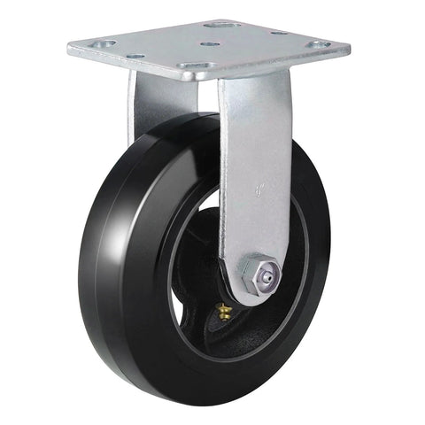 Heavy Duty 6 Inch Plate Caster Wheels With Rubber On Cast Iron Core, 1000 Lb Per Caster Capacity, Abrasion Resistant And Shock Absorbing, Ideal For Cart Cabinets And Workbenches, Rugged Plate Mount For Smooth Mobility On Harsh Surfaces