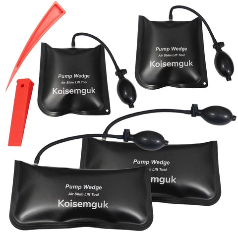 Heavy Duty Air Wedge Bag Set With Pump Leveling Kit And Alignment Tool Inflatable Shim Bags For Auto Repair And DIY Projects Includes Two Plastic Wedges 4 Pack