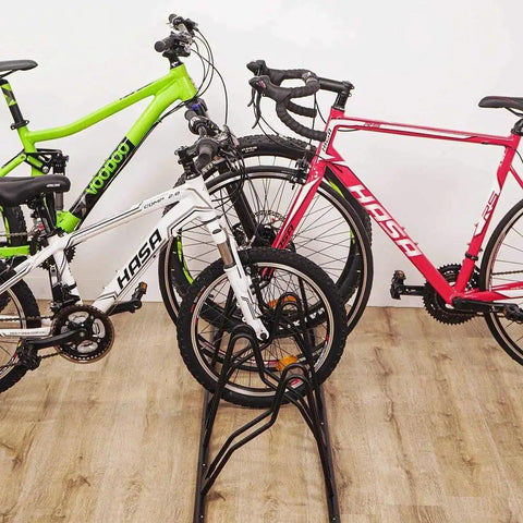 ✅ Stable, linked triple-stand design for solid, wobble-free storage✅ Compatible with 12"-29" wheels and up to 2.5" tire width (63.5 mm)