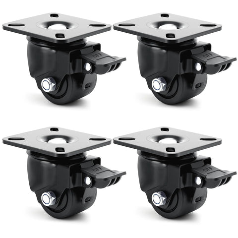 Low-Profile 2in Industrial Casters, 2200lb Capacity, Set of 4