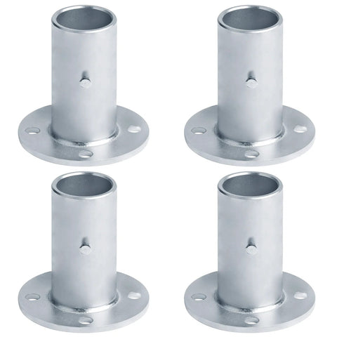 Heavy Duty Chain Link Fence Post Floor Flange Base Set Of Four For One Five Eighths Inch OD Poles Surface Mount Round Post Base With Four Pre Drilled Holes Electro Galvanized Low Carbon Steel Construction For Durable Outdoor Fencing GBGS