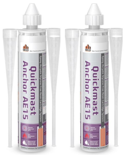 Heavy Duty Concrete Epoxy Anchoring System For Rebar And Threaded Rods AE15 Two Part Acrylate Epoxy With Cartridges And Nozzles 10.1 Fl Oz Each 2 Pack Pro Grade Fastening For Concrete Structures From DCP Quickmast