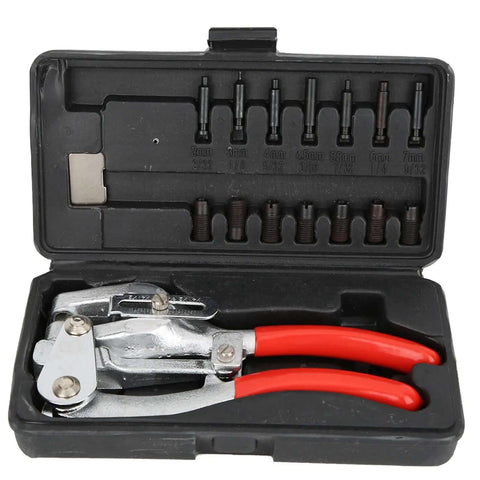 This heavy-duty handheld hole punch kit is built to punch clean, accurate holes in metal, leather, canvas, plastic, and many tough materials. It's a handy tool for crafts, jewelry making, belts, bags, and DIY projects, great for on-site work or workshop setups.