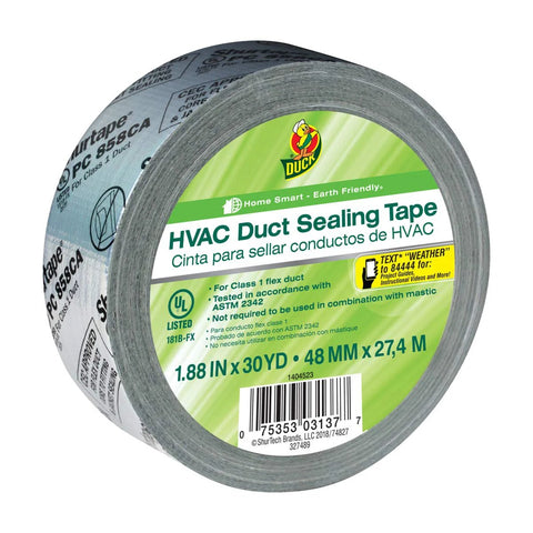 Heavy Duty HVAC Duct Sealing Tape For Rigid And Flexible Ductwork In Homes Indoors And Outdoors Silver 1.88 Inch Wide By 30 Yards Roll UL181AP Listed Temperature Range From Minus 20 To 200 Fahrenheit Indoor Outdoor Use Flame And Smoke Rated Duck Brand