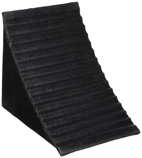 This heavy-duty rubber wheel chock is designed to secure wheels on trailers, trucks, RVs, and shipping docks. Use it in garages, loading docks, or outdoor storage to prevent unwanted movement during parking or maintenance.