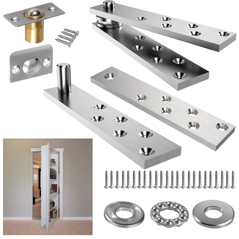 Hidden hinges hide the hardware so doors blend with walls or furniture, creating a clean, seamless look. The 360° pivot kit adds full door motion and supports heavy loads, making it handy for bookcases and cabinets.