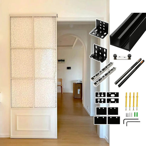 This concealed sliding door track kit creates a floating effect with a hidden rail, perfect for narrow openings. It's a handy linear slide unit for closets, bathrooms, and offices where space matters.