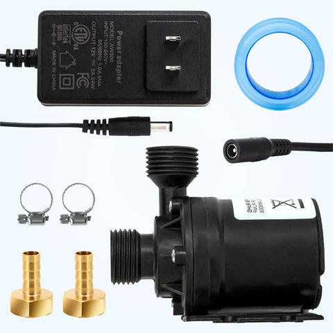 Compact, quiet 12V DC water circulation pump designed for solar heaters, RV plumbing, brewing setups, and garden projects. It runs on a brushless motor for whisper-quiet operation and connects to standard 1/2" hoses with brass adapters for leak-free installs. Non self-priming design means in-line priming may be needed in some setups.