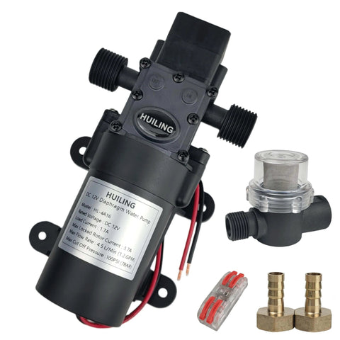 HUILING DC 12V Diaphragm Pump, Self-Priming Pump with Filter Quick Connection Terminal, 1.2 GPM 100 PSI Pressure Switch Adjustable Spray Pump, Suitable for RV Camping Shower Garden
