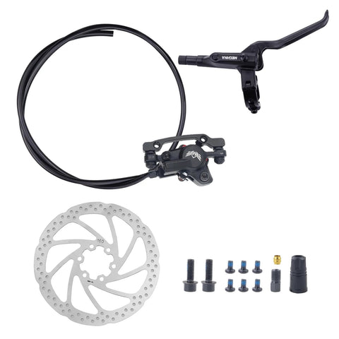 ✅ High-quality aluminum alloy caliper and lever for lightweight durability.✅ 2-piston hydraulic system with mineral oil for efficient, stable braking force.