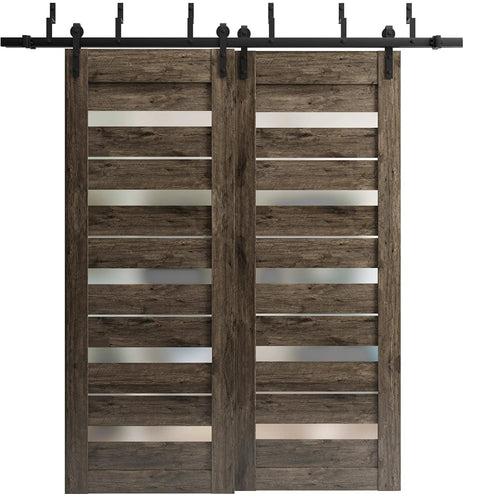 Interior Barn Bypass Sliding Doors With Frosted Glass In Black Finish Two Slab Doors With Rails Hangers Floor Guides And Hardware Included For Easy No Fuss Install
