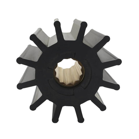 Marine flexible water pump impeller replacement for Jab pumps, 12 blade spline drive design with brass insert and neoprene rubber, compatible with Jab 17938-0001 and 17938-0003 to restore cooling flow on marine diesel engines