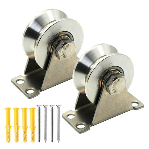 Stainless Steel V-Type Groove Wheel Pulleys, Silent Double Bearing, 2-Pack