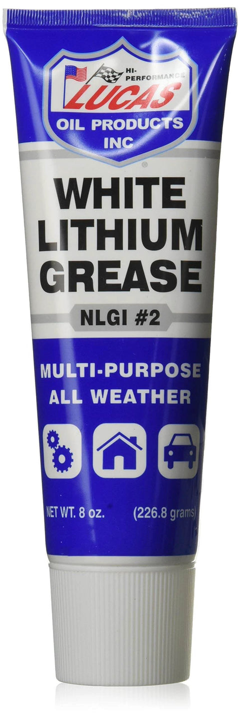Lucas Oil 10533 White Lithium Grease is a premium lubricant designed for hinges, slides, bearings, and other metal fittings in automotive, industrial, and home-shop settings. This 8 oz tube keeps handy for routine lubrication tasks and emergency repairs.