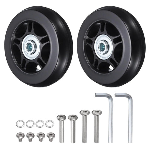 Luggage Suitcase Replacement Wheels 80x24mm Rubber Swivel Caster Bearings Repair Kit With 2 PU Bearing Wheels Washers Wrenches And Axle Screws For Trolley Bags And Caster Boards Durable Rubber Construction With Built In Bearings For Smooth Quiet Rolling