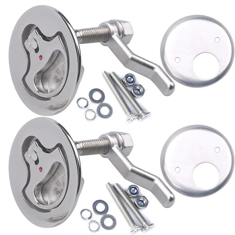 Marine Cam Hatch Latch Flush Pull Handle Set In 316 Stainless Steel, Heavy Duty Saltwater Ready, 2.5 Inch Diameter Fits 2 Inch Holes, 3 Inch Overall Height, Reinforced Back Plate, Includes Fasteners, 2 Pack