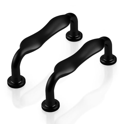 These matte black cabinet pulls are solid zinc alloy handles designed to upgrade drawers, cabinets, and wardrobes. Great for kitchens, bathrooms, offices, and garages, they come in a 3 inch length with 76mm hole centers to fit common cabinetry patterns.