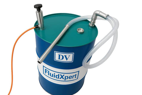 Oil Transfer Pump, Air Operated, Pneumatic, 55 Gallon Drum, 1.25 Inch ID, Teflon Packing, Chemical Transfer, Fast Fluid Transfer Speed, CNC Fluid Pump, CNC Chip Vacuum, In & Out Dual Action, DV-DP-55