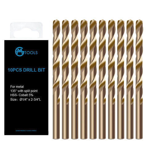 ✔️ 10 pcs, 1/4 inch cobalt bits, M35 HSS, 69.85mm flute, 135°