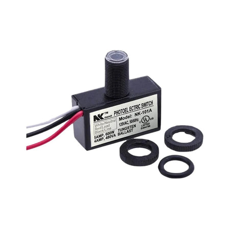 This outdoor photocell light sensor switch automatically detects ambient light to turn exterior lighting on at dusk and off at dawn. It's ideal for porches, gardens, walkways, barns, and other exterior fixtures that need automatic lighting control.