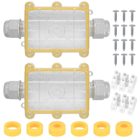 Outdoor Waterproof Junction Box 2 Pack Two Way Electrical Enclosure Transparent External Underground Cable Connector Box For 5mm 9mm 12mm 15mm Wires With Glands And Accessories Durable UV Resistant Dustproof