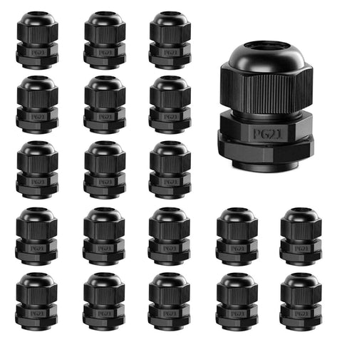 PG21 Nylon Cable Glands Waterproof IP68 20 Pack Adjustable 13 To 18mm With Gaskets Black For Indoor And Outdoor Applications Durable PA66 Nylon Construction UV Resistant Weatherproof Easy Install