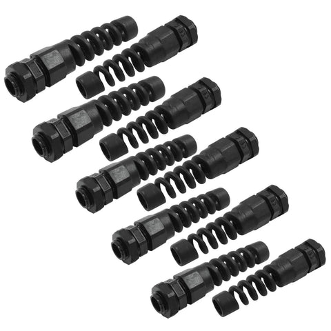 PG7 Cable Gland 10 Pack Waterproof Plastic Glands For 3mm To 6.5mm Wire Holes With Rubber Seal Spiral Flex Strain Relief Protector Black PA66 Easy Install For Outdoor Marine And Industrial Enclosures