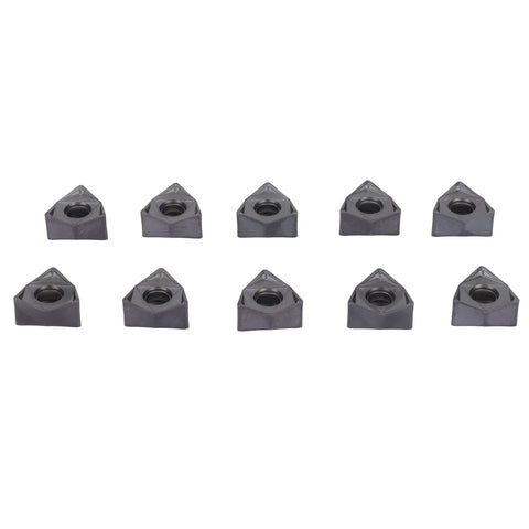 These 10-piece carbide turning inserts are engineered for CNC lathes and milling centers. The durable black coating delivers excellent heat and wear resistance for long tool life when machining tough materials like steel, stainless steel, cast iron, wood composites, and engineered plastics.