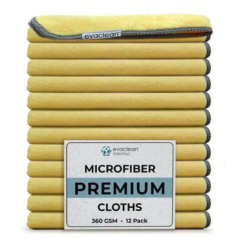 Premium Microfiber Cleaning Towels 16x16 12 Pack Yellow Reusable