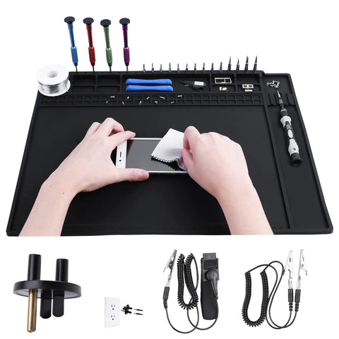 Premium Pro Grade ESD Safe Soldering Mat Kit With Wrist Strap And Grounding Plug For Electronics Repair, Heat Resistant Anti Static Work Mat 17.7 By 13.6 Inches, Includes Grounding Wire And Durable Wristband For Safer Assembly