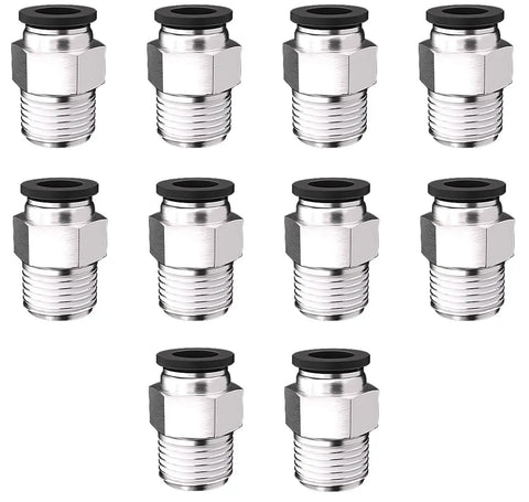 ✅ 10 pcs 3/8 in OD x 3/8 in NPT push-to-connect fittings (Ø9.53 mm OD, Ø17.15 mm NPT thread)✅ Material: high-quality plastic and copper for acid and corrosion resistance