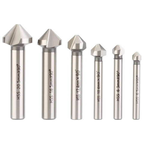 ✅ 6-piece HSS chamfer countersink bit set for accurate edge finishing